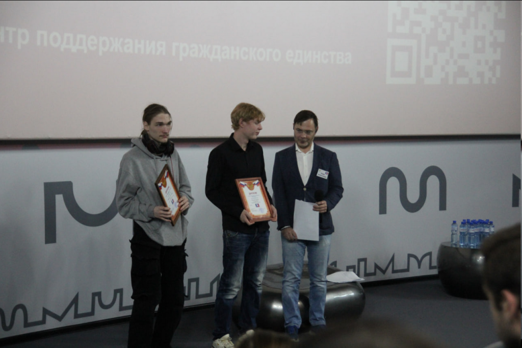 Центральным событием вечера стало награждение победителей конкурса «КиноПобеда», для участия в котором молодые авторы создали видеоролики и постеры по мотивам отечественных военных фильмов, переосмыслив классические сюжеты с помощью современных форматов и инструментов, в том числе нейросетей. Экспертное жюри конкурса, в состав которого вошли Алексей Шерстобитов, руководитель Молодёжного центра «Кристалл», Вера Холстинина, руководитель пресс-службы регионального отделения «Движения Первых», Александр Григоренко, глава региональной организации «Ассоциация ветеранов СВО», а также сам Александр Нода, оценило более 30 работ в трёх номинациях: «Лучшее изображение», «Лучший короткий видеоролик» и «Лучший видеоролик». Победители — Софья Огорельцева, Семён Ахременко и творческий коллектив студентов Краевого индустриального техникума имени В.П. Сухарева. Их работы, сочетающие уважение к историческому наследию и современные креативные подходы, произвели неизгладимое впечатление на жюри и зрителей. Полный список призёров и работы, получившие специальные призы жюри, опубликованы в группе проекта ВКонтакте.